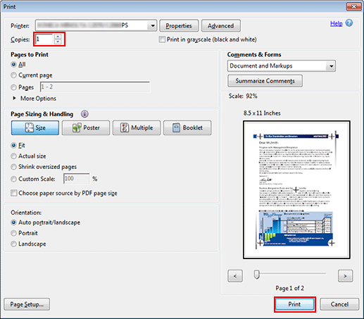 Nella schermata Stampa, inserire le Copie e fare clic su Stampa.