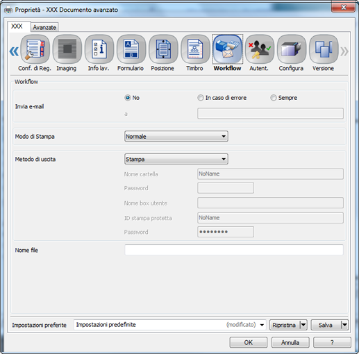 Nome file | - | Inserire un nome se si desidera specificare un nome diverso dal nome file dell'originale. |