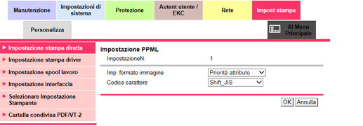 Questa impostazione è specificabile anche in Controller nella schermata MACCHINA. Per informazioni dettagliate sull'impostazione, fare riferimento a Impostazione PPML.