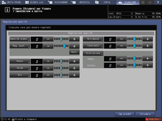 Impost pred nella schermata Regolazione qualità, sono ripristinati i valori predefiniti delle impostazioni sulla regolazione della qualità.