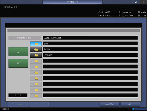 Premere il nome del server SMB di destinazione.
