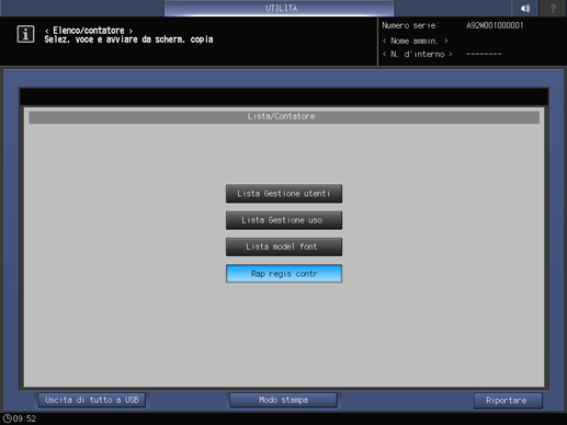 Selezionare Rap regis contr, quindi premere Uscita di tutto a USB.
