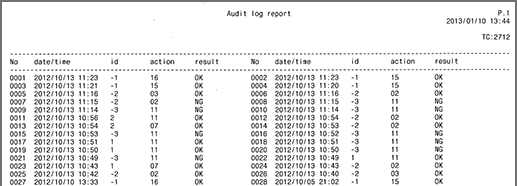 Tutti i dati del registro di revisione possono essere stampati in modalità di stampa o scritti su una memoria USB in un file. I dati del registro di revisione possono essere stampati in modalità di stampa o scritti su una memoria USB in un file.