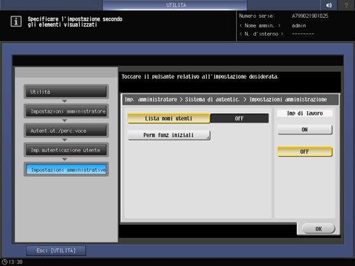 spiegazione aggiuntivaPremere OK per tornare alla schermata Impostazioni amministrative.