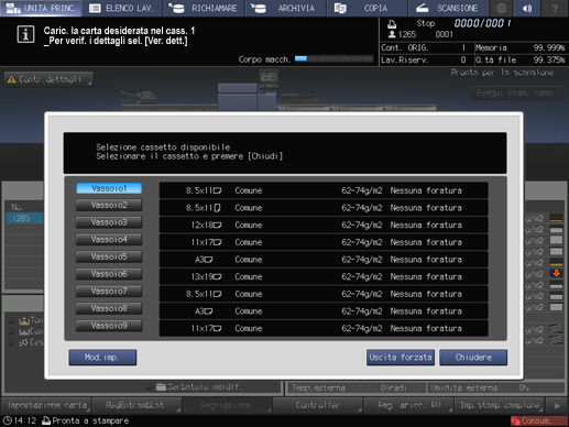 Il vassoio selezionato per l'uscita forzata sarà usato fino al completamento del lavoro.