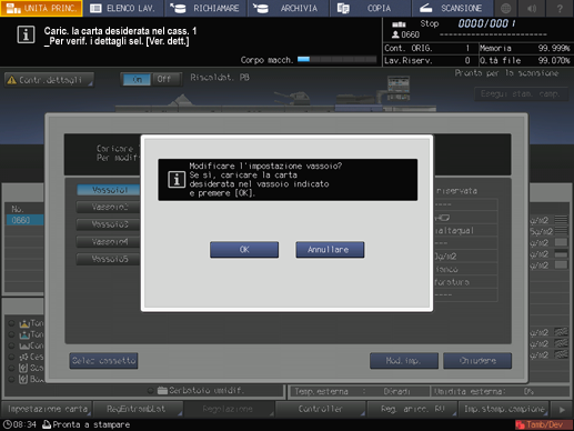 È visualizzata una finestra di dialogo per confermare la modifica all'impostazione del vassoio.
