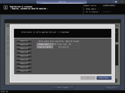 Se si desidera eseguire la regolazione automatica usando carta diversa da una carta registrata, occorre registrare nuovamente una densità desiderata. Per ulteriori dettagli, contattate il tecnico dell'assistenza.