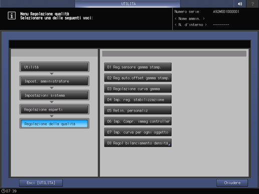 spiegazione aggiuntivaPer annullare la modifica, premere Annullare. In entrambi i casi, la schermata torna alla schermata Menu Regolazione qualità.