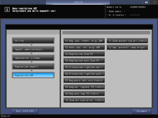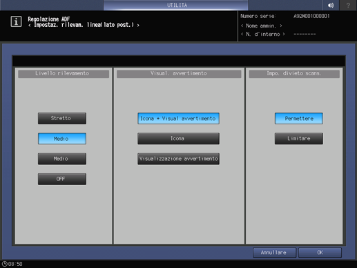 spiegazione aggiuntivaPer annullare la modifica, premere Annullare. In entrambi i casi, la schermata torna alla schermata Menu Regolazione ADF.