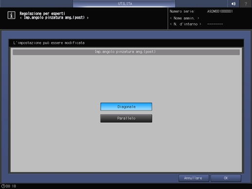 spiegazione aggiuntivaPer annullare la modifica, premere Annullare. In entrambi i casi, la schermata torna alla schermata Menu Regolazione esperti.
