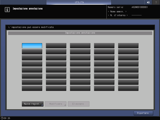 Selezionare una tasto vuoto nella schermata Impostazione annotazione, quindi premere Nuova regist. per registrare una nuova impostazione di annotazione.