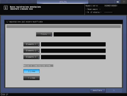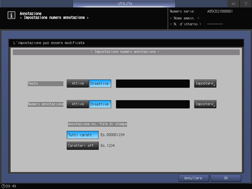spiegazione aggiuntivaQuando si seleziona Annotazione no., è visualizzata la schermata Impostazione numero annotazione.