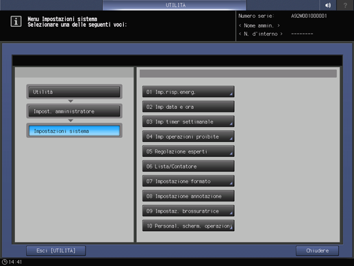 Seguire la procedura inVisualizzazione della schermata [Menu Impost. amministratore] per visualizzare la schermata Menu impostazioni amministratore.