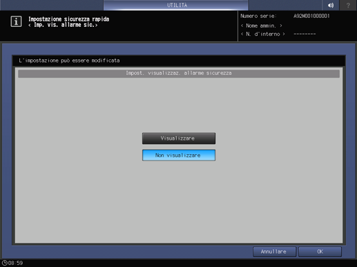 Questa impostazione è la stessa di Impost.sicurezza rapida - Visualizza avviso sicur. accessibile dalla schermata UTILITÀ.