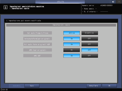 Premere Impostazioni copia nella schermata Menu Impost. amministratore.