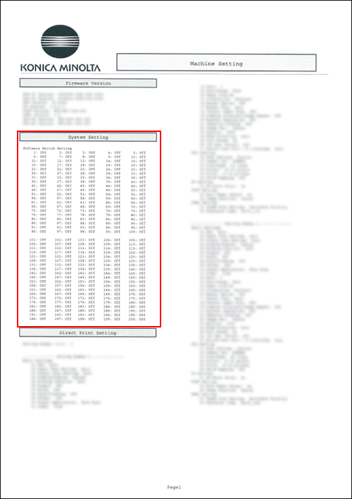 La condizione del Switch Software, è possibile verificare il report dell'impostazione Macchina. Per informazioni dettagliate, fare riferimento a [Tipo di rapporto].