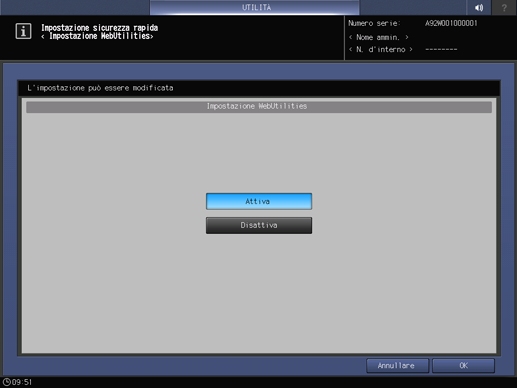 Premere Impostazione WebUtilities nella schermata Menu Impost.sicurezza rapida.