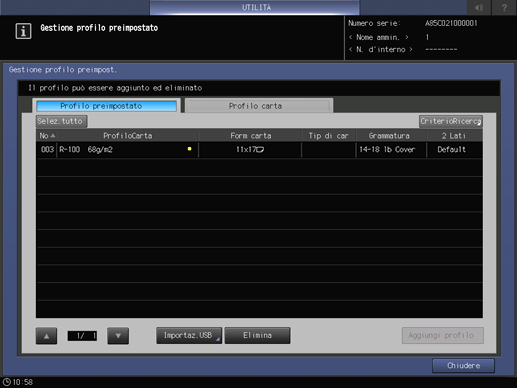 Il profilo preimpostato si riferisce a un profilo carta pre-registrato nella macchina. Se un profilo preimpostato è aggiunto a un profilo carta, può essere usato come profilo carta. È possibile cercare o eliminare un profilo preimpostato.