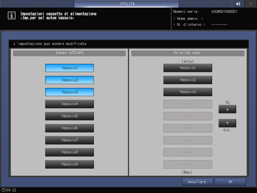 È anche possibile impostare la priorità dei vassoi selezionati.