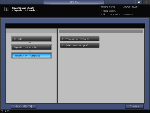 Premere Impostazioni stampante nella schermata Menu Impostazioni utente, quindi premere Processo di contorno.