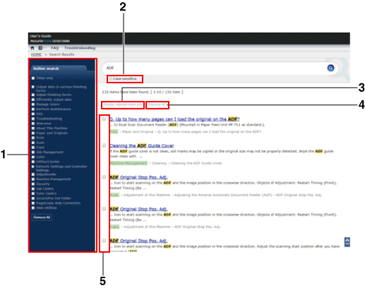 Se si racchiudono diverse parole chiave tra virgolette a byte singolo ("), tali parole chiave sono cercate come una frase. Ad esempio, se si digita "Color Centro" per la ricerca, è eseguita una ricerca utilizzando una frase, "Color Centro". Ciò consente prestazioni di ricerca più accurate.