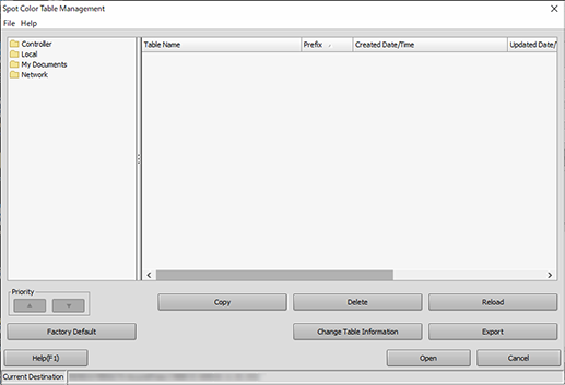 [Neu laden] | Aktualisiert die Liste der Schmuckfarbentabellen. Diese Funktion ist verfügbar, wenn [Controller] in der Baumstruktur ausgewählt ist. |