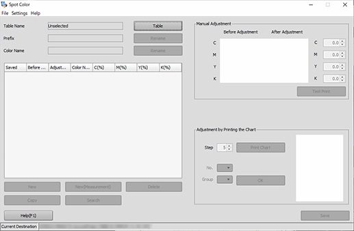 Sie können eine neue Schmuckfarbentabelle erstellen, die registrierten Inhalte überprüfen und Daten importieren oder exportieren.