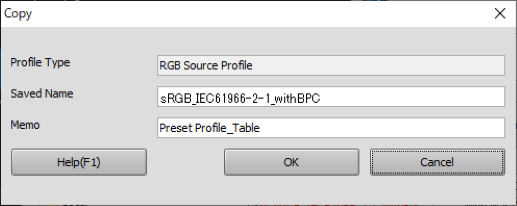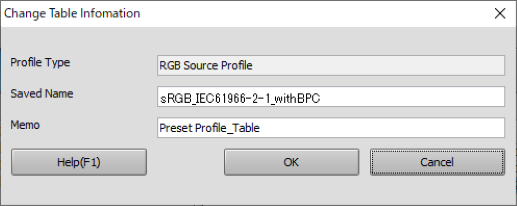 Führen Sie [Kopieren], [Löschen] oder [Tabelleninformationen ändern] für [RGB-Quellenprofil] aus.
