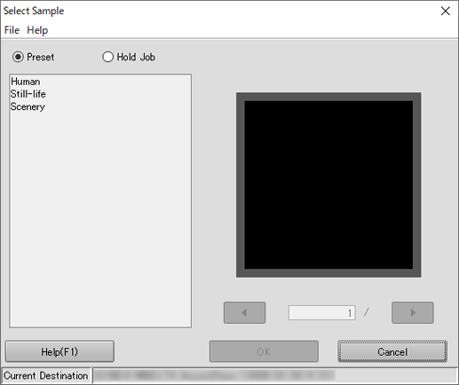 Wählen Sie [Job halten], um die gehaltenen Jobs, die im Bildcontroller dieses Systems gespeichert sind, in der Musterbildliste anzuzeigen.