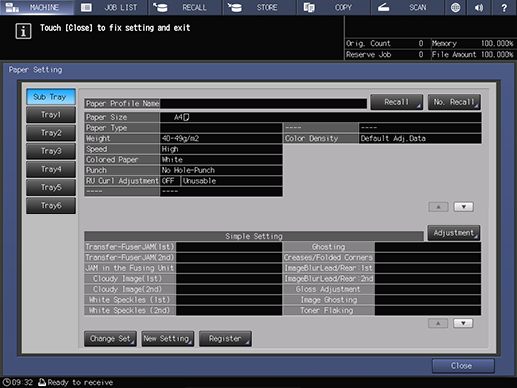 Touch Display - [HAUPTEINHEIT] - [Papiereinstellung]