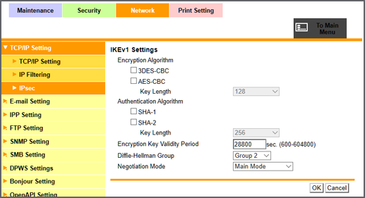 Ausführliche Informationen über die Einstellung finden Sie hier: [IKEv1-Einstellungen].