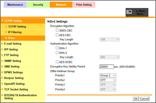 Ausführliche Informationen über die Einstellung finden Sie hier: [IKEv2-Einstellungen].