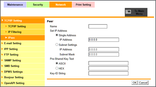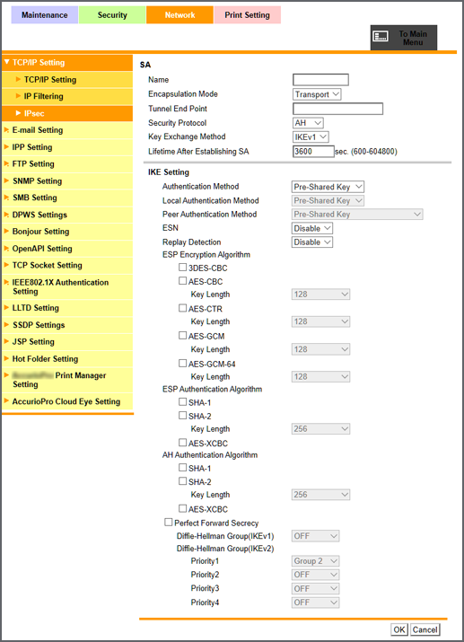 Ausführliche Informationen über die Einstellung finden Sie hier: [IPsecSA-Einstellungen].