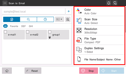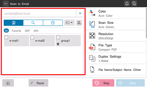 Toque [Escanear a e-mail] en la pantalla de inicio.