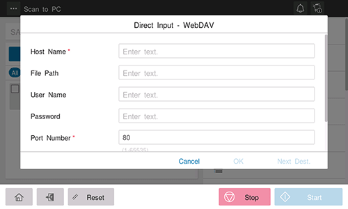 [Ruta de archivo] | Introduzca el nombre de la carpeta del host especificado en [Nombre de host] (utilizando un máximo de 127 bytes).