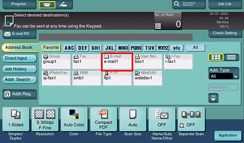 Si es necesario, toque [Comprobar ajuste] antes de la transmisión y compruebe el destino especificado y la configuración.