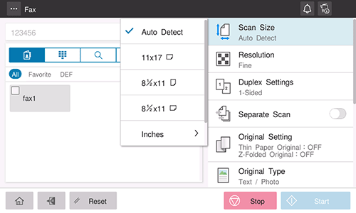 [Normal/dúplex] | Permite seleccionar la cara del original que se va a escanear (Normal/Dúplex). |