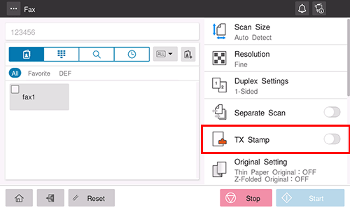 Cuando se escanean originales con el ADF, se imprime un sello de transmisión en un original escaneado para certificar que el original se ha escaneado.