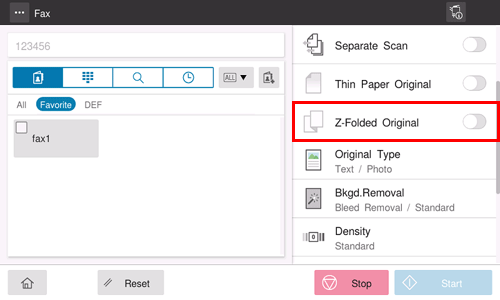 Si se carga un original plegado en el ADF, puede que el tamaño del original no se detecte de forma precisa. Para escanear el original plegado en el ADF, ajuste esta opción en ON.