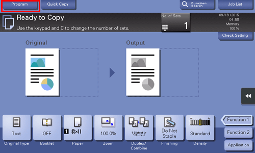 El programa es una función que se emplea para registrar una combinación de diferentes ajustes de copia en una tecla de recuperación. El programa que se registrará en el modo de copia se denomina programa de copia.