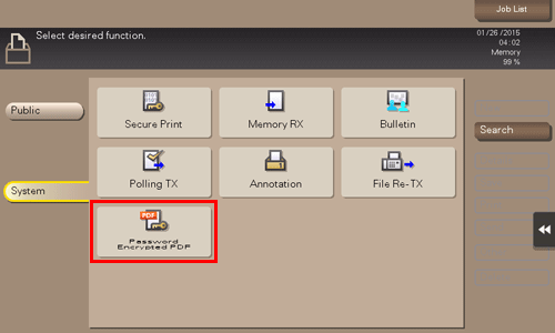 El proceso de almacenamiento e impresión del archivo se configura al guardarse en la carpeta de usuario de PDF cifrado con contraseña. No es posible cambiar del proceso de almacenamiento al de impresión, o del proceso de impresión al proceso de almacenamiento.