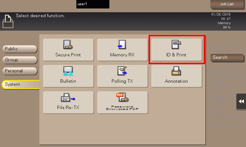 Toque [Sistema] - [ID e impresión].