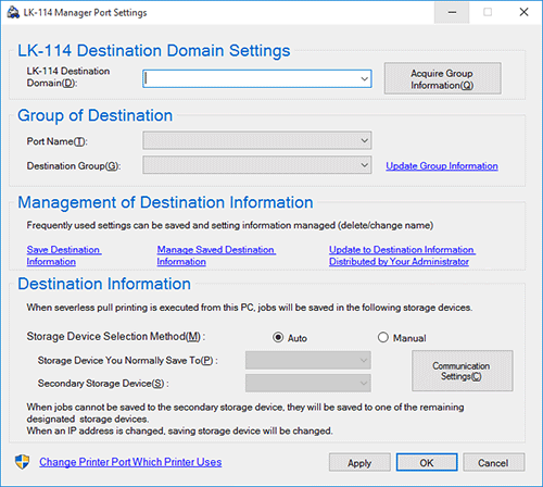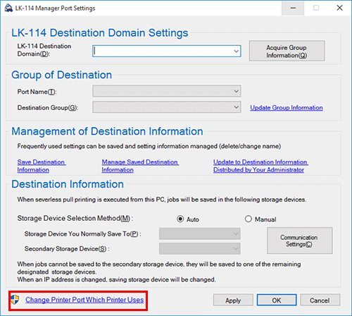 Cambie el puerto de la impresora de destino a [LK-114_ManagerPort] y, a continuación, haga clic en [OK].