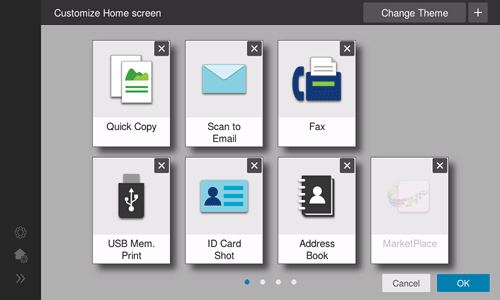 Cuando está instalada la aplicación Personalize, puede cambiar las teclas de función que se visualizan en Inicio para cada usuario que inicie sesión.