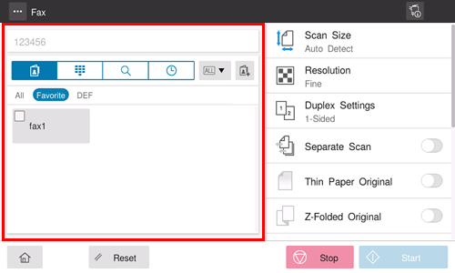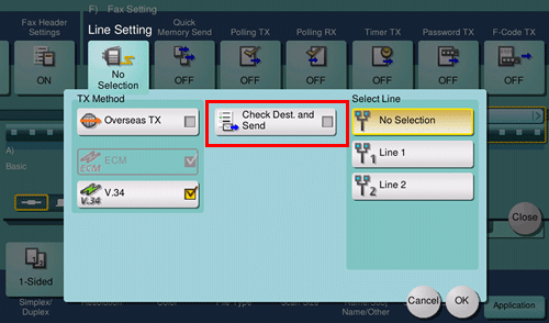 Cuando se asigna a [Comprobar destino] el valor ON al registrar un destino de fax, se ejecuta la función de comprobar destino y enviar antes de enviar un fax a un destino registrado. Para obtener más información sobre cómo se registra un destino de fax, consulte Aquí.