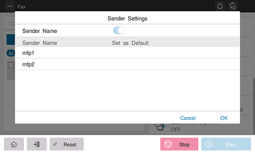 Seleccione el nombre de remitente que desea cambiar de la lista de nombres de remitente y toque [OK].