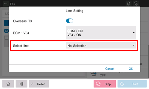 Seleccione una línea utilizada para transmisión en [Seleccionar línea] y toque [OK].