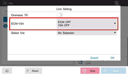 Asigne a ECM el valor OFF en [ECM V34] y toque [OK].