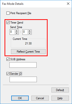 Cuando hace clic en [Mostrar hora actual], se muestra la hora actual del PC en [Hora de envío].