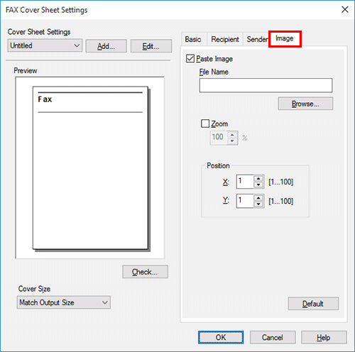 Puede editar los datos de la portada en la pantalla [Configuración de la cubierta del fax], que se abre al hacer clic en [Configuración...]. También puede configurarla en la ficha [Fax] del controlador de fax.